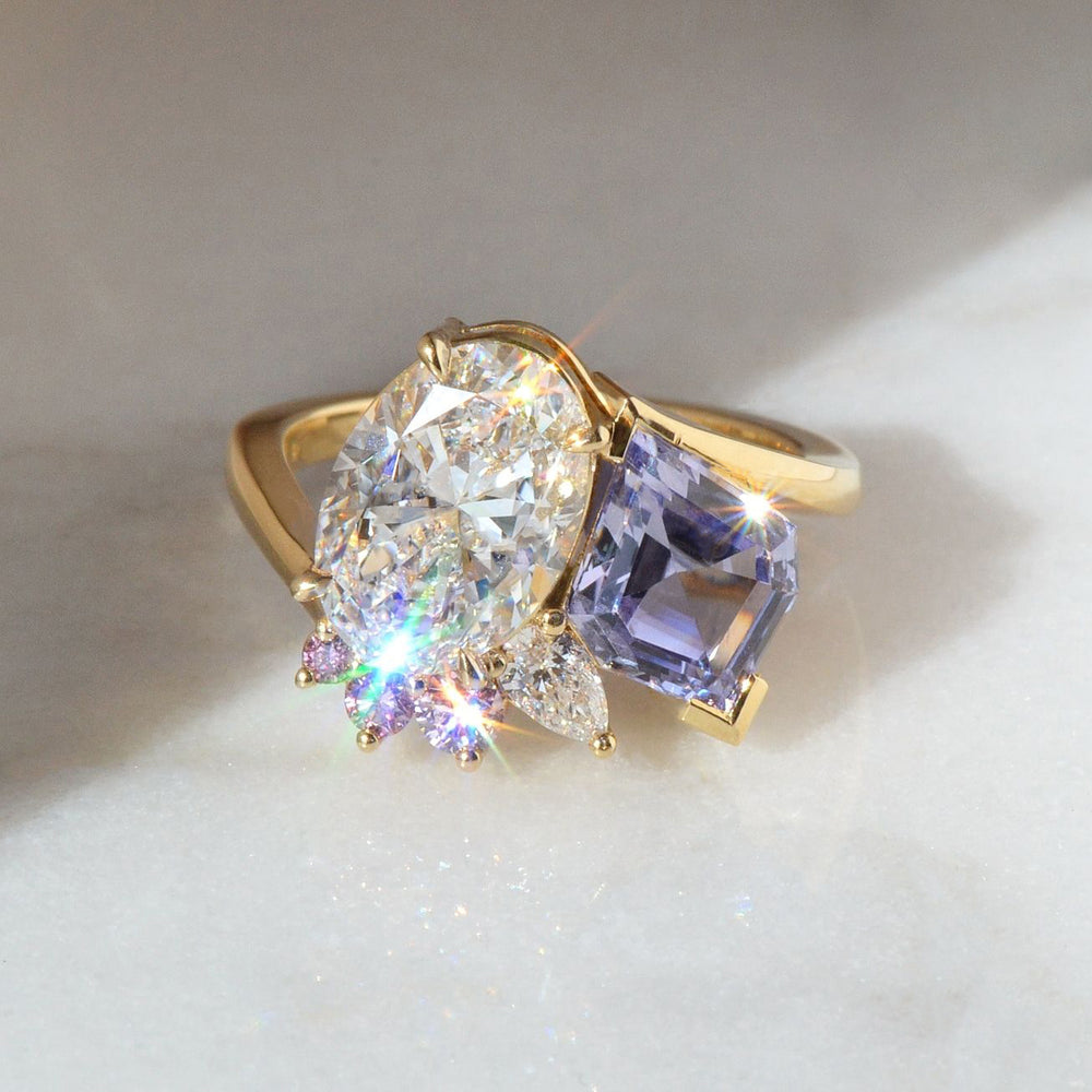 Toi et Moi engagement ring / Bespoke sapphire and diamond wedding band